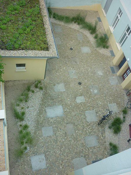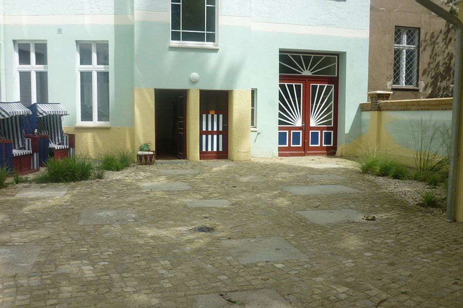sandfarbige steine mit original berliner schweinebauchplatten.